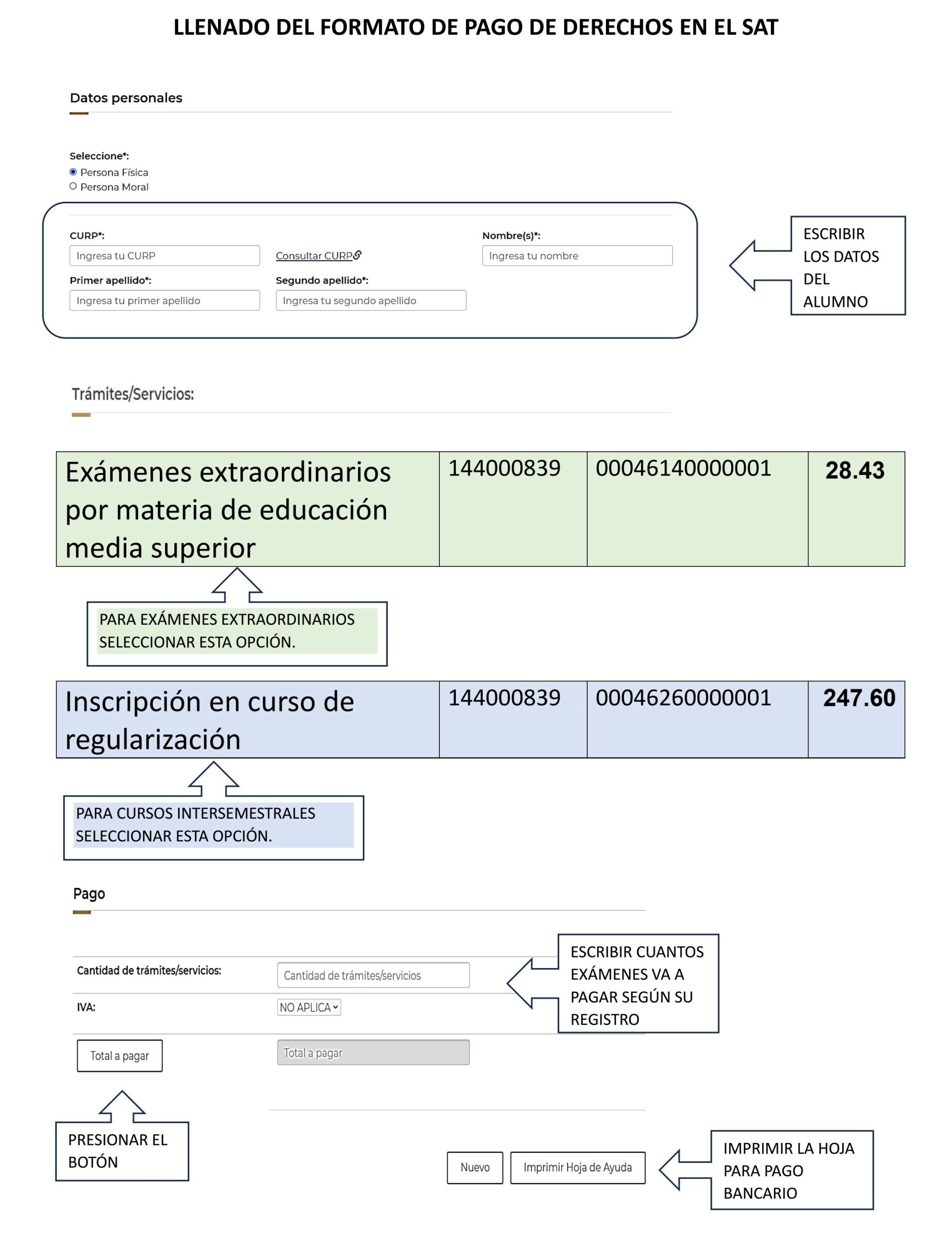 - Cada alumno es responsable de los pagos efectuados ante el SAT, ya que el plantel no está facultado para realizar devoluciones de ningún concepto.